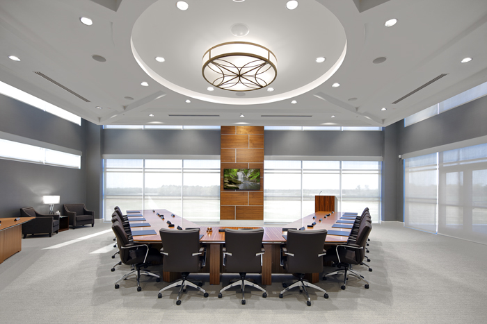 This 94,500-square-foot project consisted of a 37,000-square-foot corporate office building as well as a 57,500-square-foot operations building and warehouse. Within the corporate office building were offices, meeting rooms, training rooms, a large central meeting room, and a retail branch office for the electric cooperative. The retail branch office has a separate entrance with walk-in teller windows, covered drive-through teller windows, pneumatic tube system and a full-size bank vault.