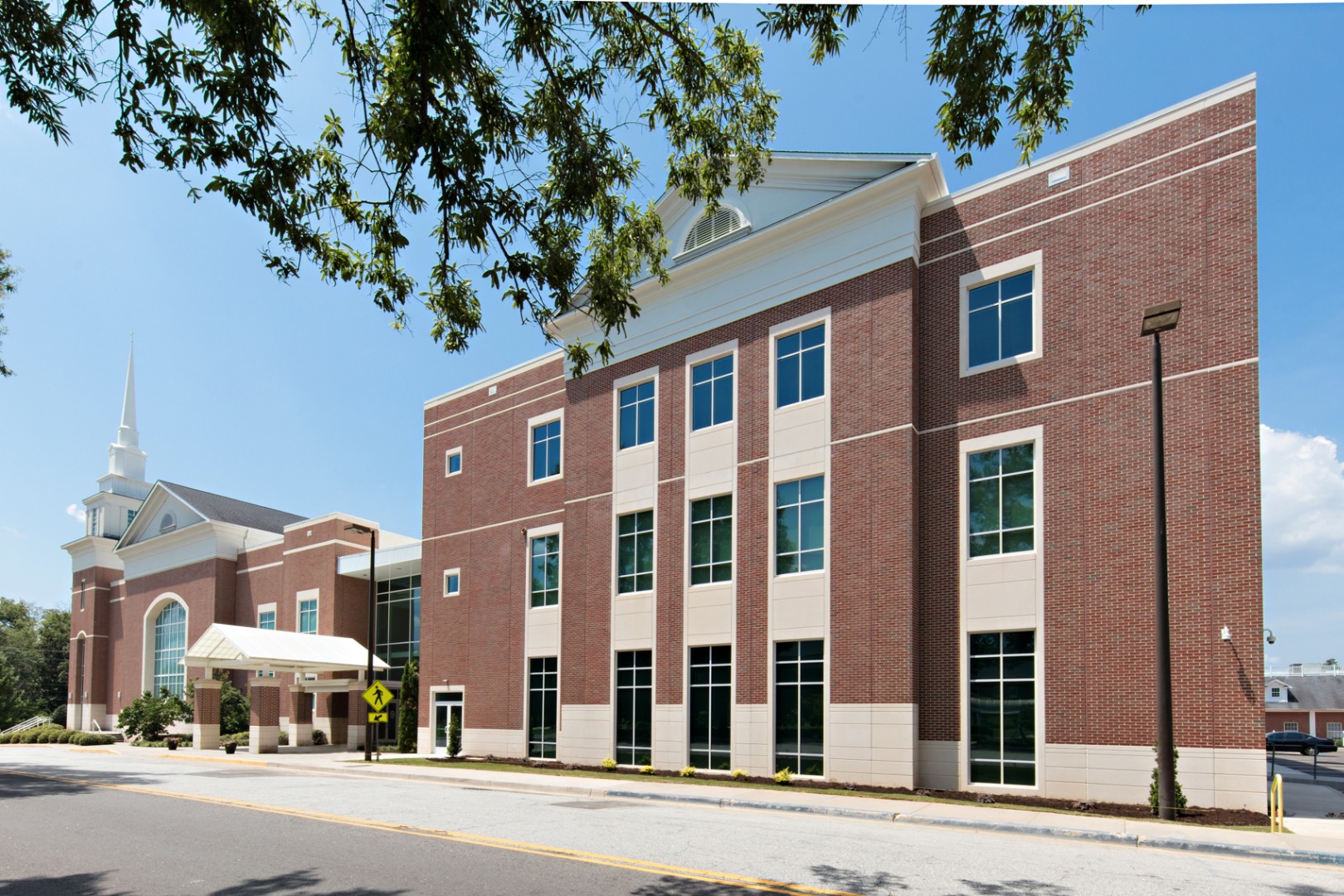 An interior "bridge" on the second level connects the stand-alone Family Ministries building to the second-floor corridor of the church's world-class Worship Center completed by the same design-build team a decade earlier. The Family Ministries building is the third project for the McCrory/LS3P team at this location in a 10-year period. Like their previous projects, the Family Ministries facility was delivered safely, on time and within budget.