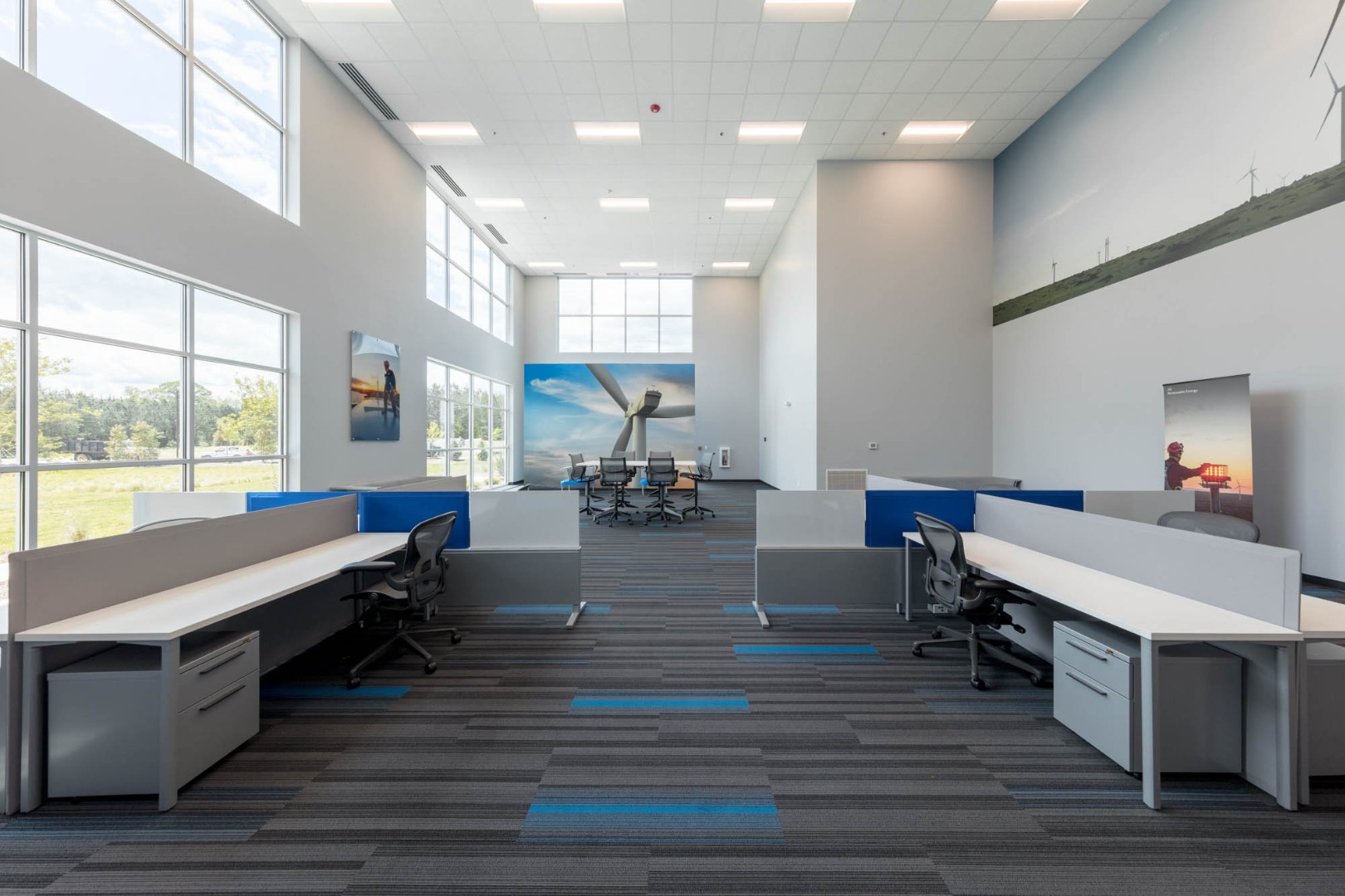 GE tests prototype bearing designs and next-generation bearing technology for wind turbine blades in this leading-edge R&D facility. McCrory provided design-build services for this multi-faceted upfit assignment, delivering the project on a fast-track schedule — just 20 weeks from project kick-off to turnover.