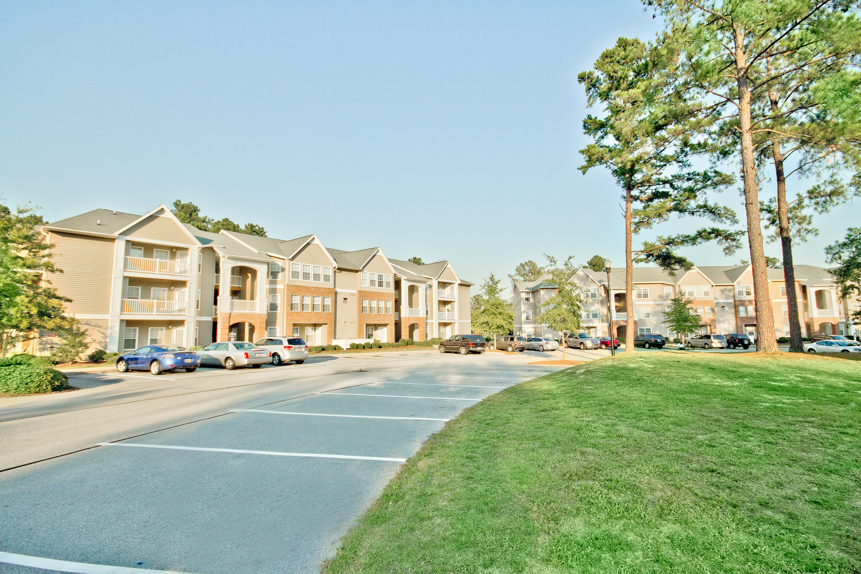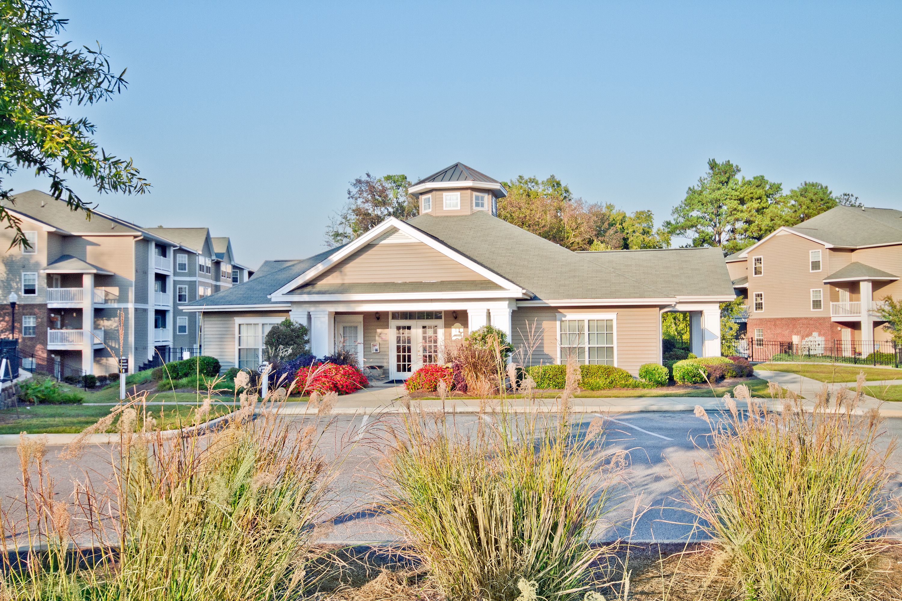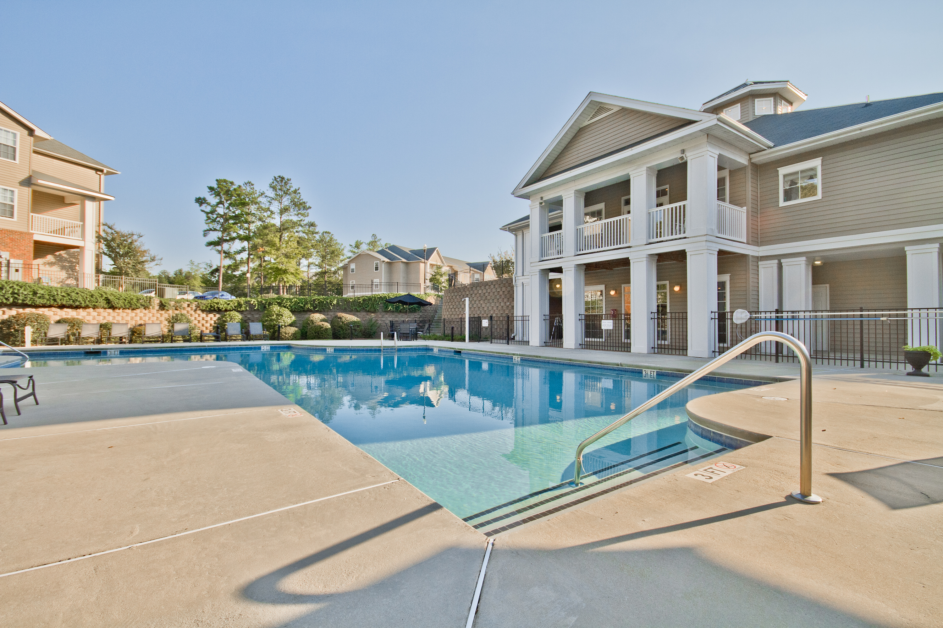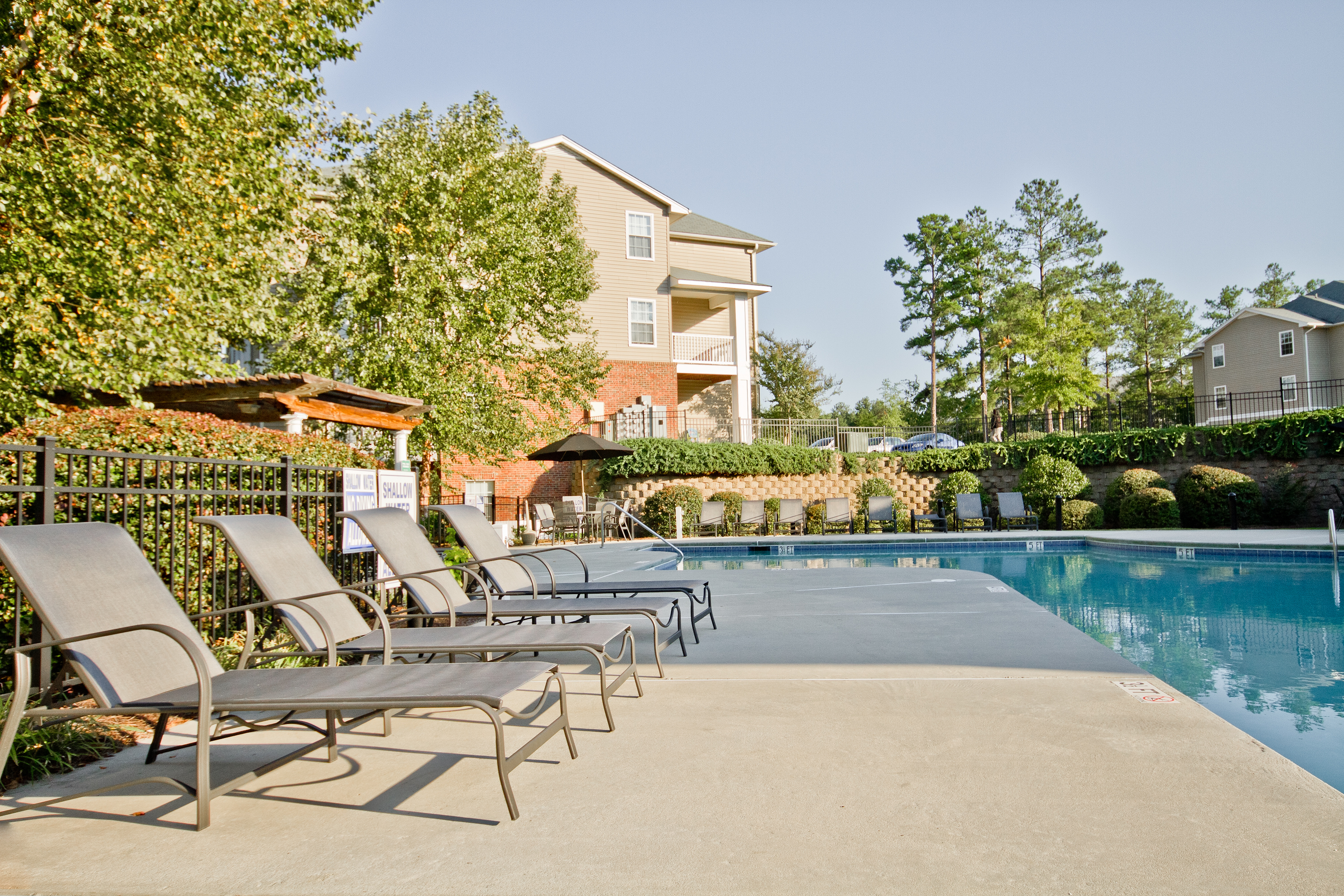 - Three-story garden-style community with a swimming pool